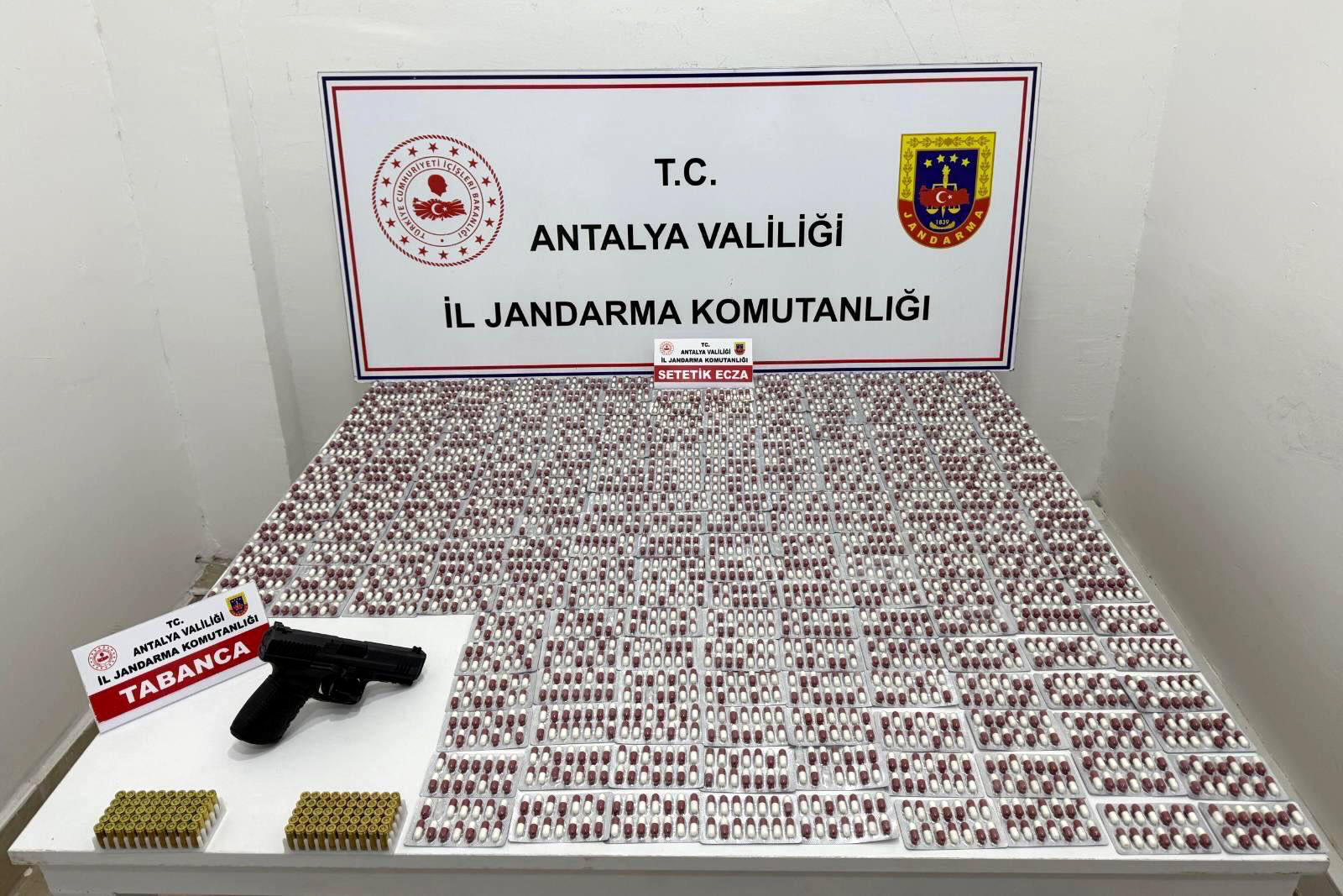 ANTALYA’nın Kepez ilçesinde jandarma ekiplerince düzenlenen uyuşturucu operasyonunda 1298 sentetik uyuşturucu hap ile ruhsatsız tabanca ve 113 tabanca mermisi ele geçirildi.