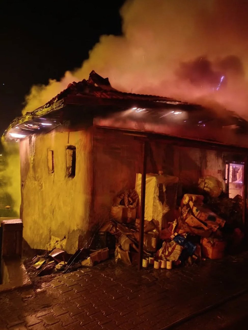 Yangında evinde mahsur kaldı